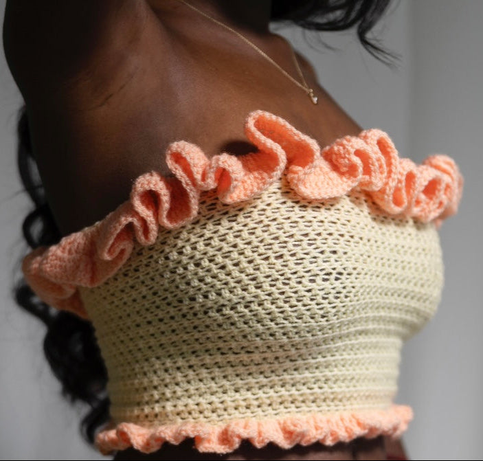 The Ruffle Me Top features delicate ruffle detailing and a snug, stretchy fit that hugs in all the right places. Perfect for pairing with your fave shorts, skirts, or the full Ruffle Me set — it's a must-have for your summer wardrobe.